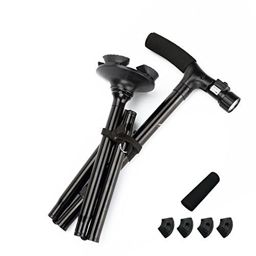 [Stand Alone] Himal 6*LED Light Walking Stick Sponge Handle Adjustable Folding Cane Walking Stick with Carrying Case (Black)