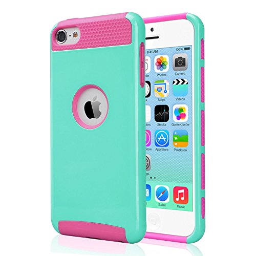 iPod Touch 6 & 5 Case, Asstar Heavy Duty Case for Apple iPod Touch 6th Generation_2015 Released, 2-Piece Style Hybrid Hard Cover (Mint Rose)