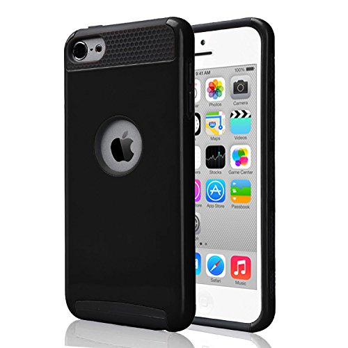 iPod Touch 6 & 5 Case, Asstar Heavy Duty Case for Apple iPod Touch 6th Generation_2015 Released, 2-Piece Style Hybrid Hard Cover (Black Black)