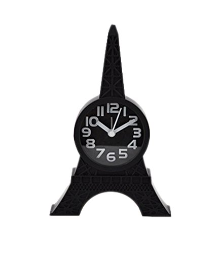 S&lee Mini Paris Eiffel Tower Shape 3D Paris Design Quartz Alarm Clocks for Home Decoration Black