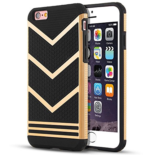 iPhone 6 Case, iPhone 6S Case, LOEV Non-Slip [Slim Fit] [2 in 1] iPhone 6 6s Protective Case, [Stylish Design] Anti-Scratch Rubber Bumper Hybrid Cover Case for iPhone 6 6s 4.7" - Gold/Black