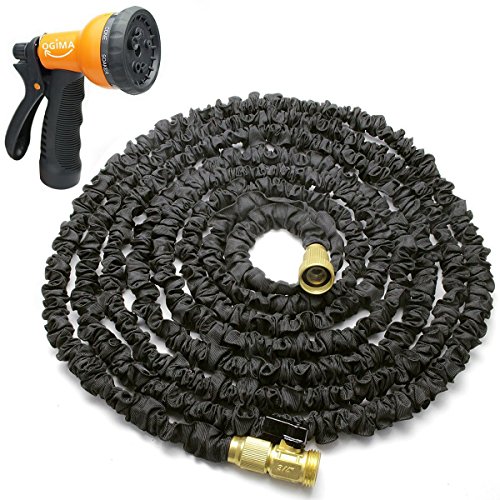 Ogima Latex Expandable Garden Magic Hose with All Brass Fittings/8 Functions Spray Nozzle (Black) (100FT)