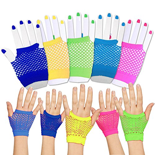 Toy Cubby Funky Retro Style Colorful Fishnet Wrist Gloves - 24 Pieces