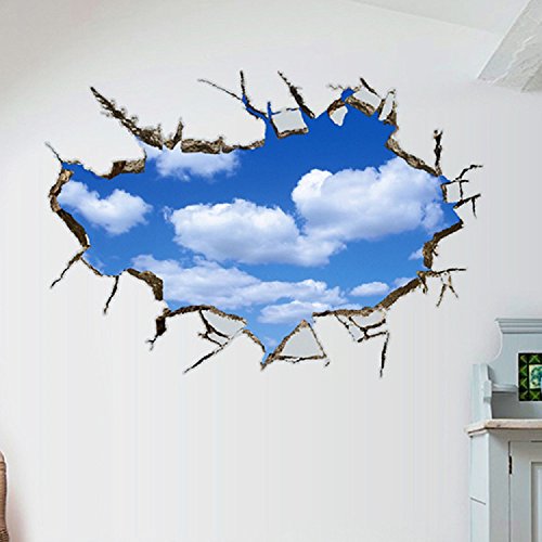 Amaonm Removable 3D Vivid Blue Sky Holes Break Through the Wall Wall Stickers for Wall and Ceiling Home Art Decor Decorations Wall Decals for Kids Boy Girls Bedroom Playroom (5888cm)
