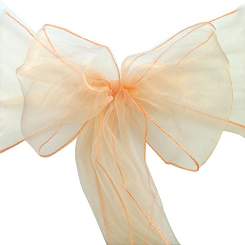 Bit Fly 29 Colors 100PCS Organza Chair Cover Sash Bow 18x275CM Wedding Party Reception Banquet Decor 7*108" (Peach)