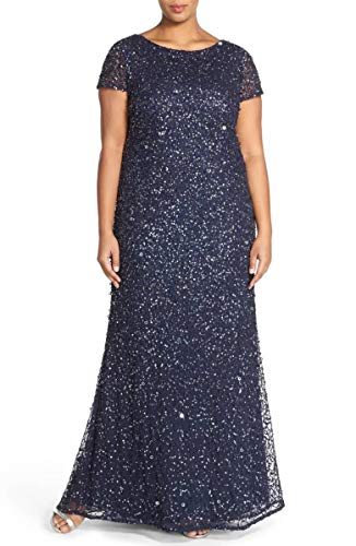 Adrianna Papell Women's Plus-Size Scoop-Back Long Beaded Gown, Navy/Gunmetal, 14W