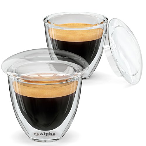 Espresso Cups With Lids - Set Of 2 - Double Walled Demitasse Shot Glasses To Keep Your Coffee Hot. By Alpha Grillers