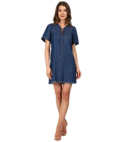 7 For All Mankind Women's Lace Up Denim Dress, Deep Lagoon Blue, X-Small