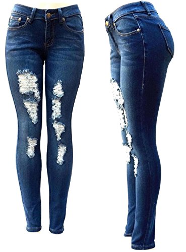 Jack David Womens Distressed Denim Jeans Ripped Blue Skinny Destroy Stretch Jean Pants (19/20, Jack David Jd-r65b- Blue)