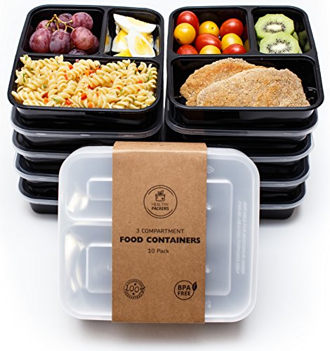 Healthy Packers Meal Prep Containers 3 Compartment with Lids| Compartment Food Prep Containers, For Lunch and Portion Control| Bento Box Containers (32oz, 10 pack)