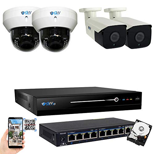 GW Security 8 Channel 4K NVR H.265 8MP @30FPS Realtime PoE Surveillance System with (2) Bullet and (2) Dome 4K @30FPS Weatherproof Outdoor/Indoor IP Security Cameras