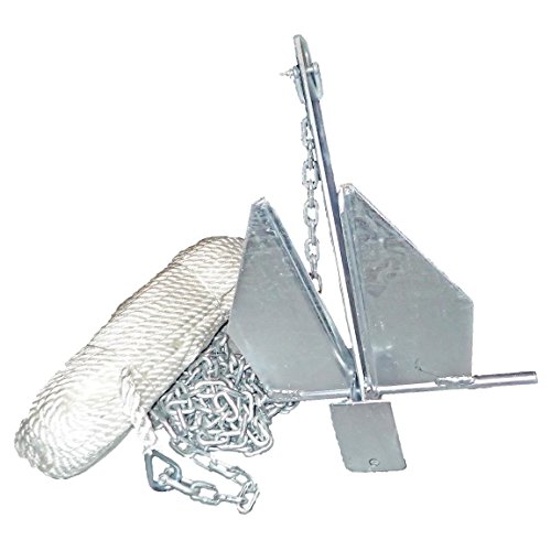 Norestar Fluke/Danforth Style Boat Anchor Kit: 150' Rope, 6' Chain, for Small Boats