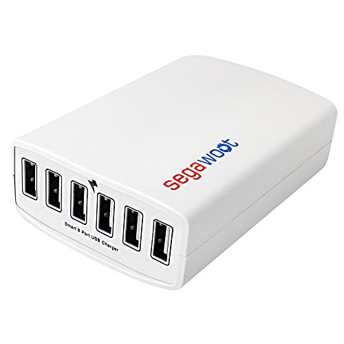 Segawoot 12A 60 Watt 6 Port Desktop USB Charging Hub, US Smart Sense IC Wall Charger Station for iPhone, iPad, iPod, Android Cellphones and Tablets, White