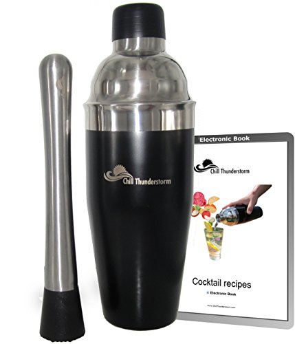 Premium Stainless Steel Cobbler Cocktail Shaker Set (Large 25oz / 750ml) with a Built-in Strainer and Cocktail Drink Muddler