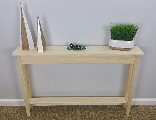 46" Unfinished Pine Narrow Wall, Foyer, Sofa, Console, Hall, Table With Bottom Shelf