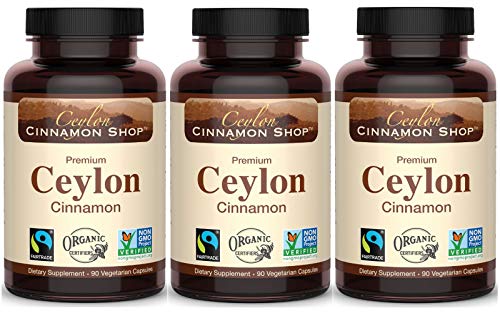 Organic Ceylon Cinnamon (100% Certified) Supplement, 90 Capsules Per Bottle (3 Bottles) by Ceylon Cinnamon Shop