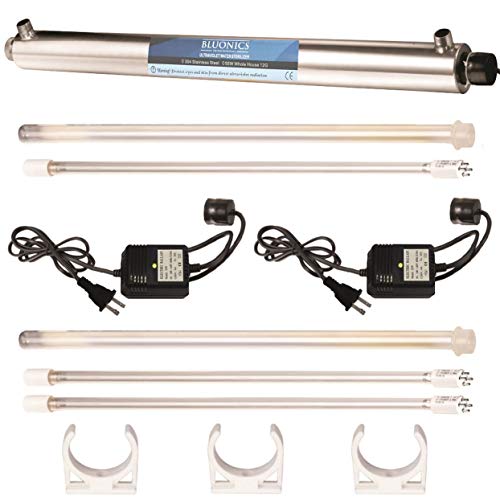 Bluonics 55W Ultraviolet Light UV Water Sterilizer Purifier Filter for Whole House Water Purification 12 GPM with 3/4" MNTP Inlet Outlet + 2 Extra Bulbs + 1 Extra Ballast + 1 Extra Quartz Sleeve