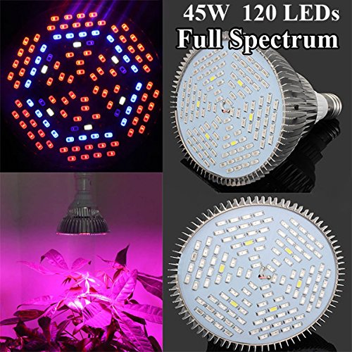 OAGTECH 45W E27 Full Spectrum Plant Grow 120 LED Bulb Garden Greenhouse Plant Seedling Growth Light