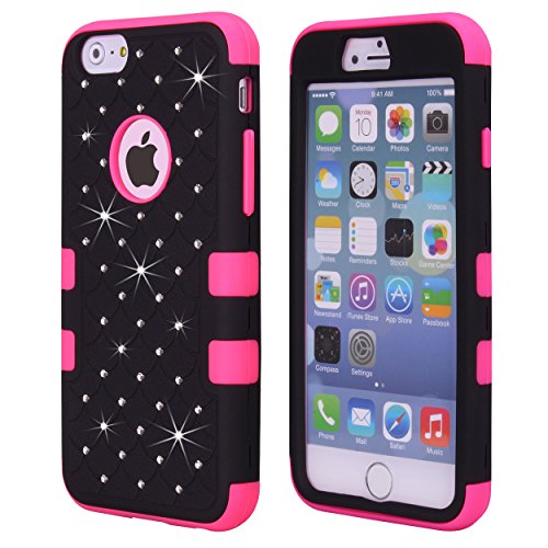 iPhone 6S Case, KAMII 3 Layers Verge Hybrid Soft Silicone Hard Plastic Triple Quakeproof Drop Resistance Protective Case Cover for Apple iPhone 6/6S (Black Rose)