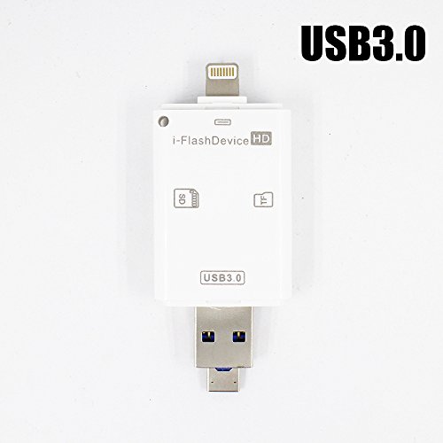 USB 3.0 Lightning Reader 3 in 1 Lightning iFlash SDHC Micro SD TF OTG Card Reader for iPhone 5 6 7 7 Plus Android iPad Mac PC (White)