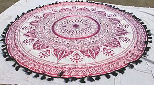 fairdecor Ombre Pink Purple Mandala Roundie Black Color Tassel Pom Pom Fringing Beach Throw Yoga Mat Table Cloth Hippy Hippie Boho Gypsy Wall Hanging