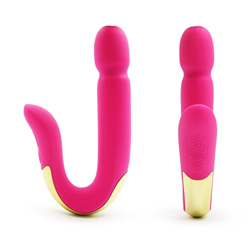 Lurepink Double Vibrating Rechargeable Dildo Vibrator 7 Pulse Modes USB Charger Clitoral G Spot Stimulator Wand Waterproof 2 Motors for Female Masturbation Massager (Pink)