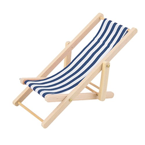 1/12 Dollhouse Miniature Foldable Beach Deck Chair Chaise Longue Furniture Blue White Stripe