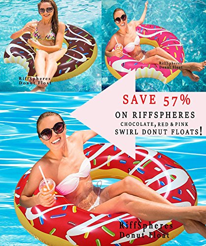 RiffSpheres Giant Donut Pool Float Lounger - Chocolate Inflatable Pool Floats Toy Raft For Adults And For Kids. 51" Gigantic Pool Float For Family & Friends (Great Christmas Gifts Idea)