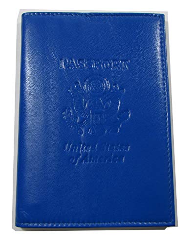 Passport Holder Protector Blue Genuine Leather United States Wallet for Travel