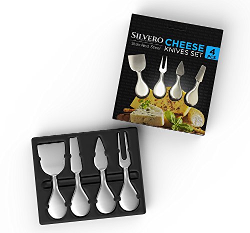 Silvero Premium Quality Cheese Knives Set of 4 - Stainless Steel Cheese Knife, Slicer, Shaver, Cutter, Spreader Gift Box