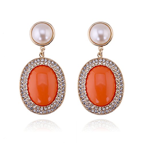 Fashion Gold Plated Inlaid Imitation Pearl Statement Earrings for Women Rhinestones Dangle Clip on Earrings