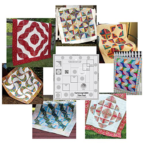 Bundle of Creative Grids Curvy Log Cabin Trim Tool 8in Finished Blocks and Seven (7) Cut Loose Press Curvy Log Cabin Quilt Patterns