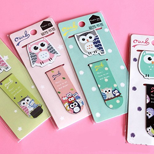 CatRat's Cute Magnetic Colorful Bookmarks - 4 sets (4 small + 4 large bookmarks) - Great for books and magazines, or for binding papers (Happy Owls)