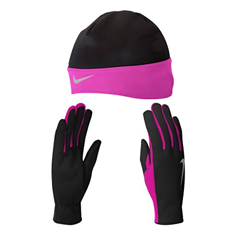 Nike Womens Running Thermal Beanie/Glove Set, (Medium, Black/Vivid Pink)