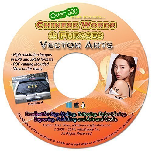 Chinese Words and Phrases Vector Arts, Cliparts, Lettering, EPS Vinyl Cutter Ready - CD-Rom. Excellent for Sign Making, Tattooing, Embroidering, Engraving, Publishing and Arts and Crafts.