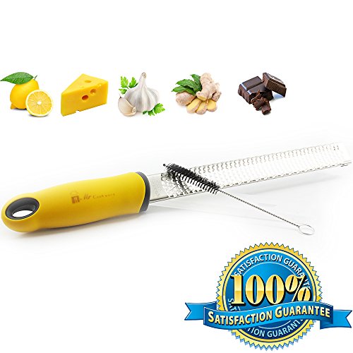 Mr. CookWare Stainless Steel Grater Zester - Cheese, Lemon, Ginger, Garlic, Chocolate - Ergonomic Handle with Rubber Base - Free Cleaning Brush + Protective Cover