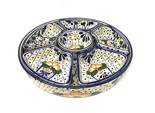 12 inch Mexican Talavera Ceramic Taco Platter with Six Nesting Salsa Bowls