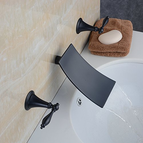 Hiendure® Waterfall Wall Mount Widespread Bathroom Sink Faucet Bathtub Mixer Tap with Three Holes Two Handle, Oil Rubbed Bronze