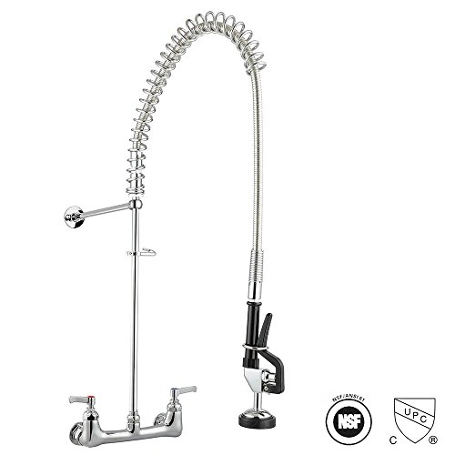 Aquaterior Chrome Double Handle Brass Pre-Rinse Commercial Wall-mount Faucet w/Pull Down Restaurant CUPC NSF ANSI