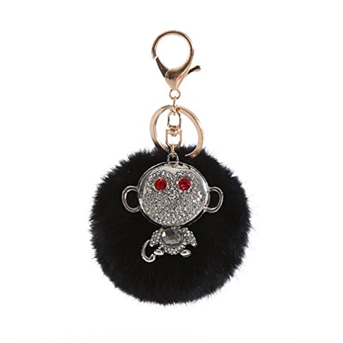 Sankuwen Monkey Rhinestone Fur Ball Keychain Bag Ornaments Pendant (Black)
