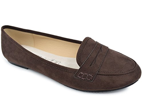 Greatonu Women's Faux Suede Comfort Slip-on Penny Loafer Flat Shoes