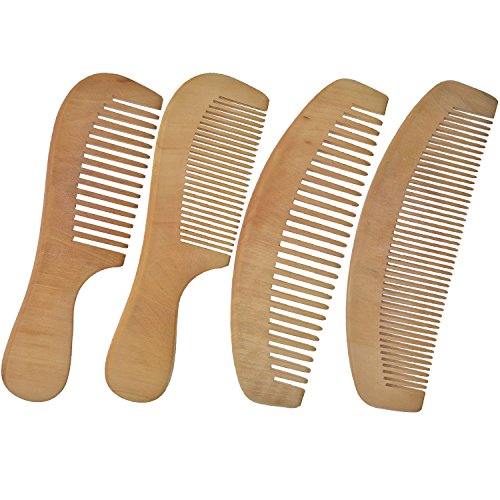 LCLHB 4PCS Natural Wooden Wide Tooth Beard and Hair Combs Set For Men and Women (6.5-7 Inch Length)