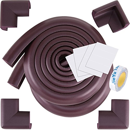 SySrion® 13.3ft (13ft Edge + 4 Corners) Edge Guard - and Corner Cushion - Premium Child Safety Home Safety Furniture Bumper and Table Edge Corner Protectors - COFFEE BROWN
