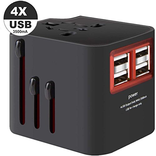 Worldwide Travel Charger with 4 USB Ports Power Converters for EU, UK, US, USA, AU, Europe & Asia, All-in-one Universal Wall Plug Multi-Outlets Electrical Adaptor - < Black >?