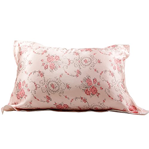 IBraFashion Silk Pillowcase for Hair and Skin Beauty Pink Roses Print Girl Silk Pillowcase Standard/Queen