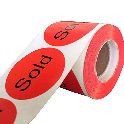 Wootile 500 Stickers/Labels"Sold" Red Stickers Labels Retail Sold (2 inch)