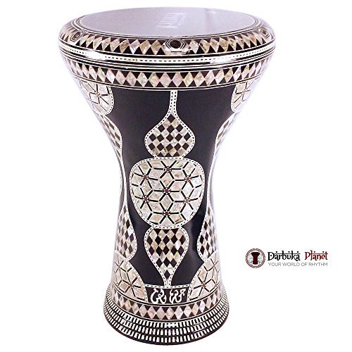 The "Black Egyptian Gate" Gawharet El Fan Darbuka 17" Drum Mother of Pearl Darbuka