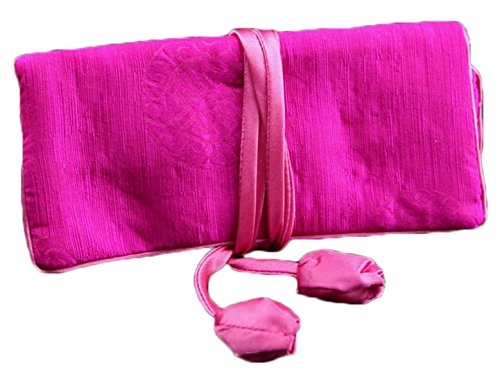 iSuperb Travel Jewelry Roll Silk Embroidery Brocade Elegant and Bold Travel Jewelry Case (Rose)