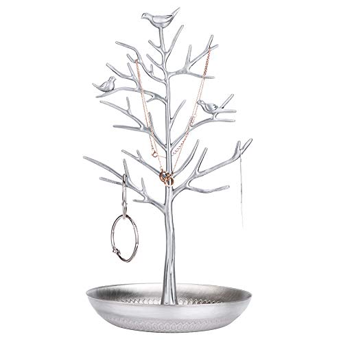 Jewelry Holder / Jewelry Organizer, Silver Birds Tree, Jewelry Stand Display for Hanging Earrings,Necklace,Bracelet Rack Tower(Silver)
