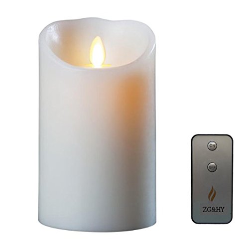 Remote Included Realistic Dancing Flameless Wax Pillar Candle, Moving Wick Candle with Timer,3.5"Dx5"H, Ivory